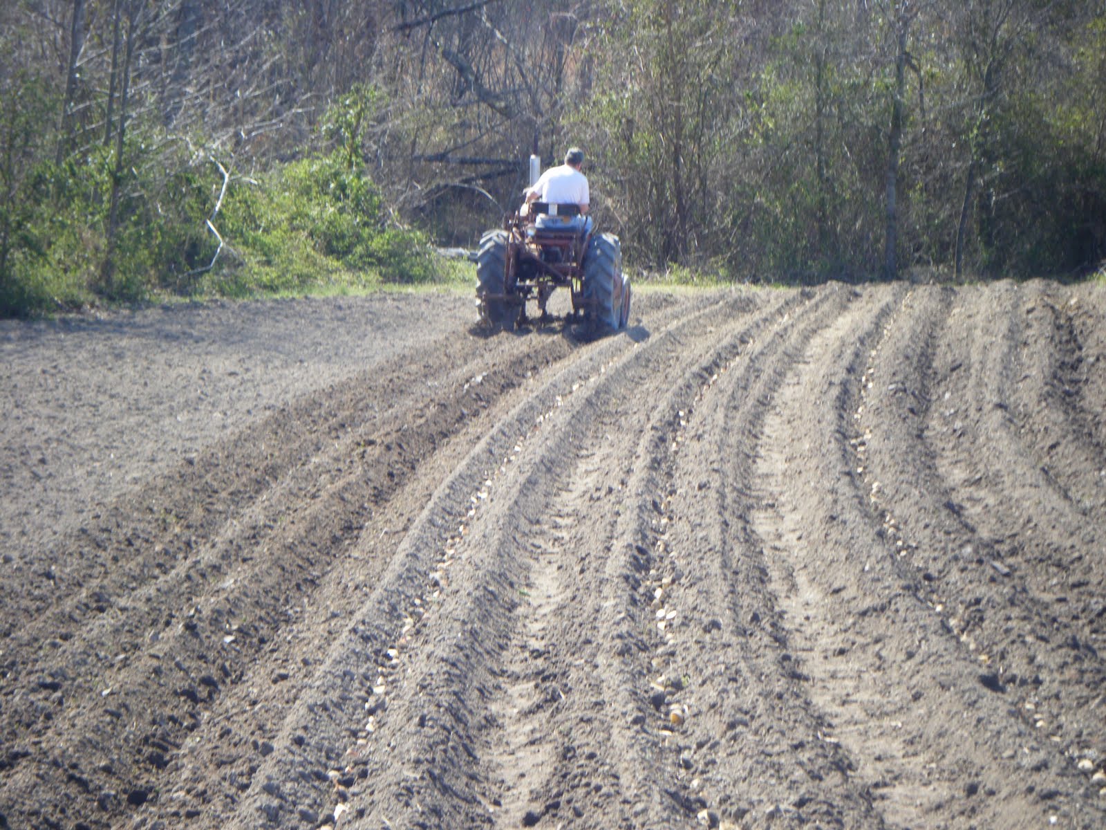 there are three places that dad (and duncan) plant, one is right behind mom and dad's house, one is "duncan's garden", and the other is "down by the creek". previously, the potatoes were down by the creek. however, this year the potatoes are planted in "duncan's garden." dad had already plowed and rowed where the potatoes were to go (red and white "irsh" - one syllable - potatoes) so we just had to walk over.